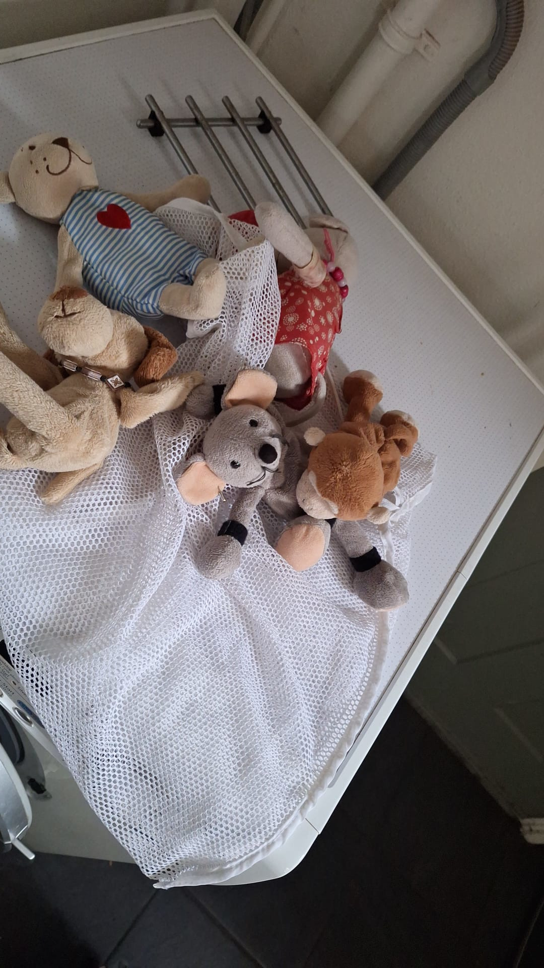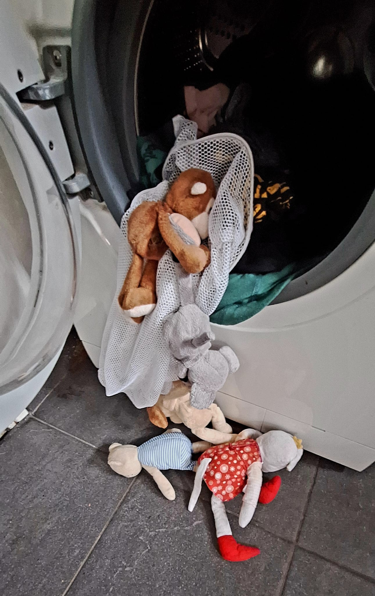 | De knufs zijn vies en moeten de wasmachine in! | ||