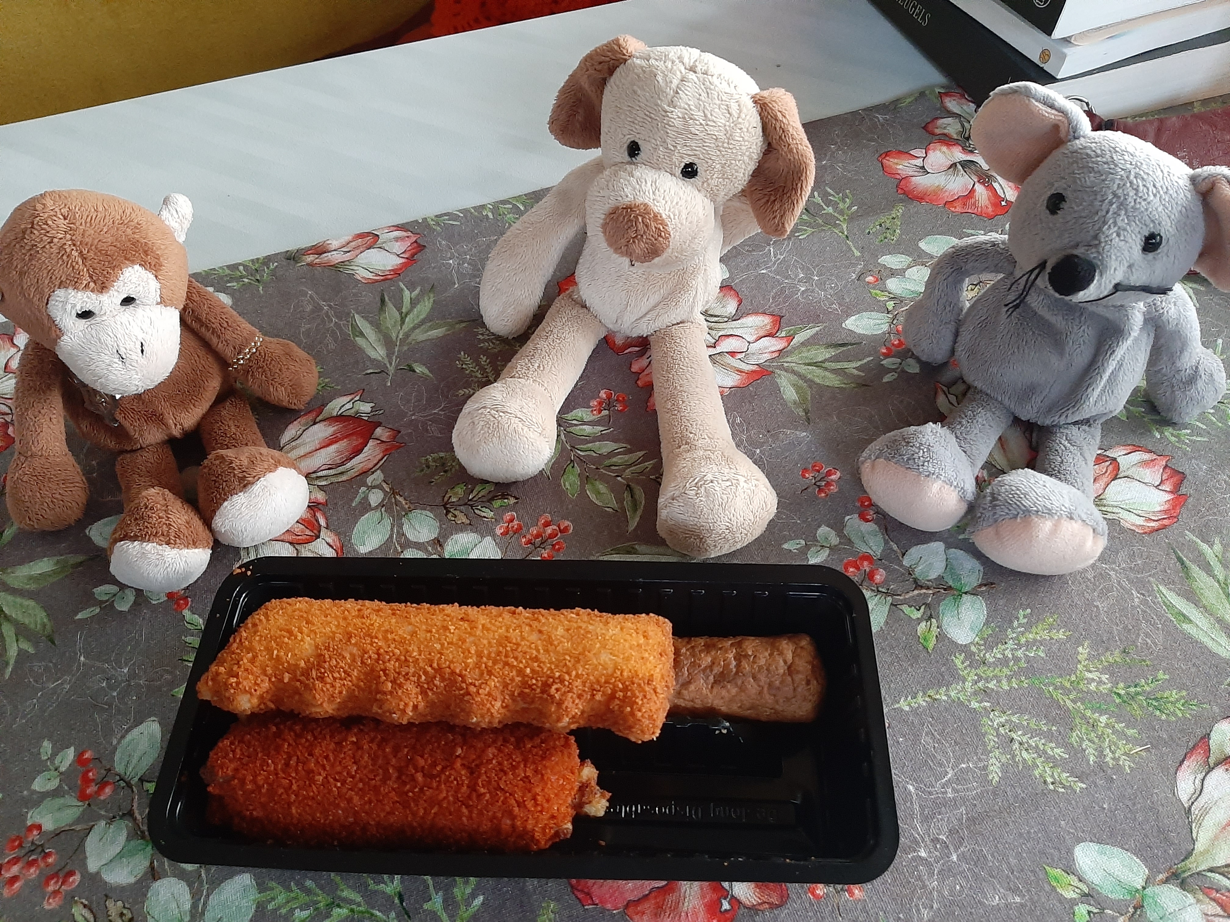 "Tjeempig de Peempig", zegt Ron 'Beton' want direct na de chippies hebben ze nog honger en eten de knufs mee. Heerlijke snacks, genoeg voor ons allemaal. Nou als dit niet genoeg is, dan weet ik het niet meer! Kijk ze smullen want ze gaan zo naar bed toe.